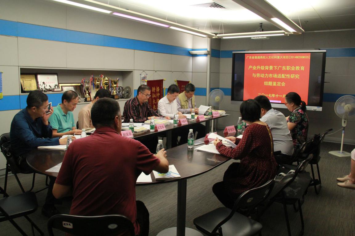 11月9日,由广东省教育厅组织的广东技术师范学院陶红教授主持的2014年度广东省普通高校省级重大科研项目《产业升级背景下广东职业教育与劳动力市场适配性研究(2014WZDXM035)》结题验收会,在工业中心贵宾室举行。广东省教育厅科研处吴宝榆副处长出席了会议。结题验收专家由华南师范大学教科院院长卢晓中教授、广东省教育研究院副院长李海东教授、华南理工大学高教所赵庆年教授、广东交通职业技术学院副院长刘越琪教授、广州科技贸易职业学院院长蒋新革教授组成,卢晓中教授任专家组组长。学院社科处、课题组主要成员、职业技术教育学在校研究生参加了验收会。