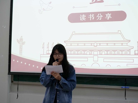 学院学生干部吴晓彬同学结合自身工作实际,分享了学习《习近平与大学生朋友们》的深刻感悟。她围绕党的二十届四中全会精神,阐释了“坚持人民至上”理念与学生工作的内在联系,强调学生干部应发扬奉献精神,以实际行动解决同学们热切关心的问题,切实发挥好学校与学生之间的桥梁纽带作用,甘做服务同学的“绿叶”。