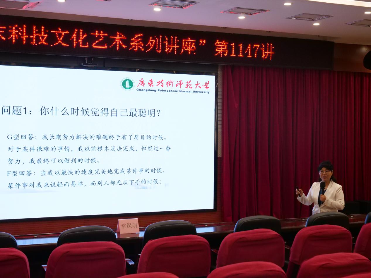 讲座伊始,一场趣味十足的互动开场游戏迅速活跃了现场氛围。随后,常保瑞教授聚焦成长型思维与固定型思维两大核心概念,进行了系统且深入的讲解。她指出,拥有成长型思维的人会主动迎接挑战,面对挫折时坚持不懈、力求实现自我突破;而固定型思维者则习惯逃避挑战、轻易放弃努力,将他人成功视为威胁,难以实现自身进步。