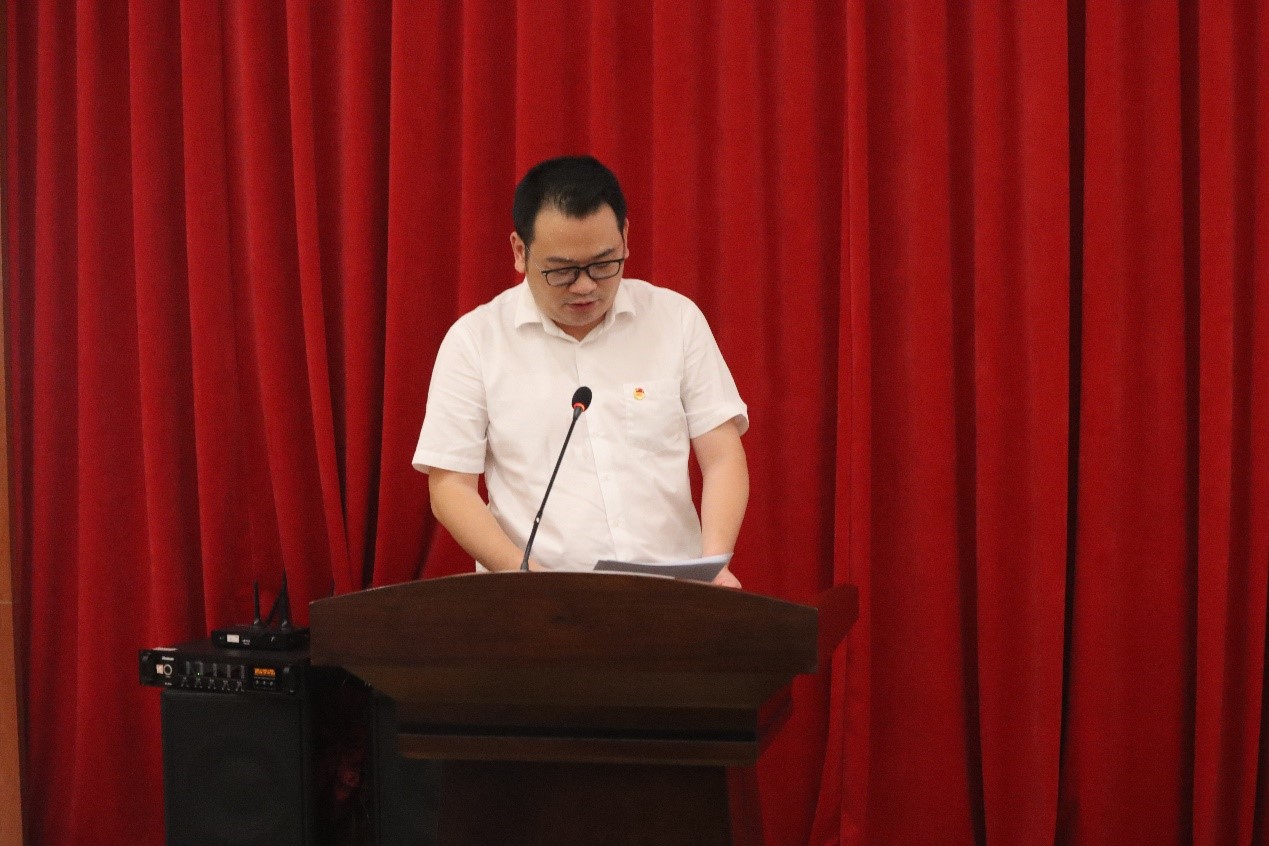 监票人和计票人对投票结果进行统计期间,第六届学生会权益调研部负责人张明月为大会作2021-2022学年年度团学财务报告,公开透明地为大家呈现2021-2022学年团学的收支情况;第六届团委副书记邹洁仪作团委工作汇报以及第六届学生会主席团成员董佳宜作学生会工作汇报。报告回顾了一年来我院团学工作取得的进展和成果,并分析了推进团学进步的思路和方向,提出了下一阶段工作的设想和建议。