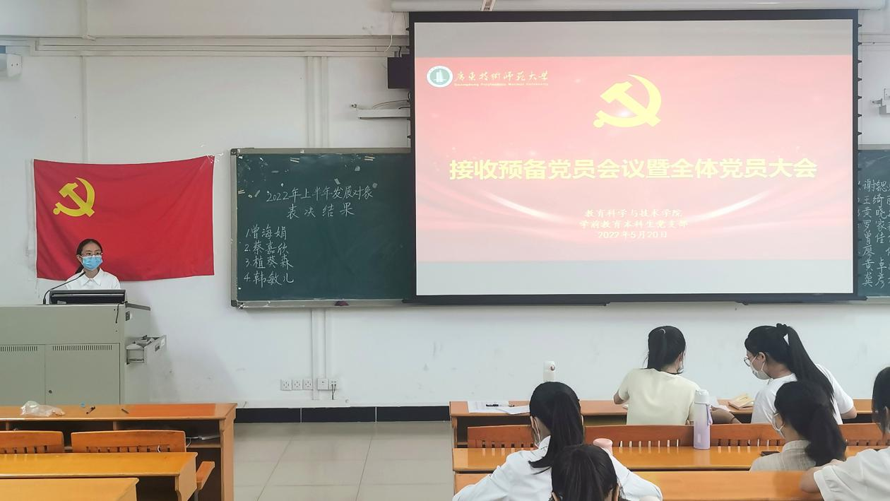 2022年5月20日,学前教育本科生党支部在三教314教室召开了接收预备党员会议暨全体党员大会。本次会议由学前教育本科生党支部副书记郑蔓妮同志主持,全体党员参会。