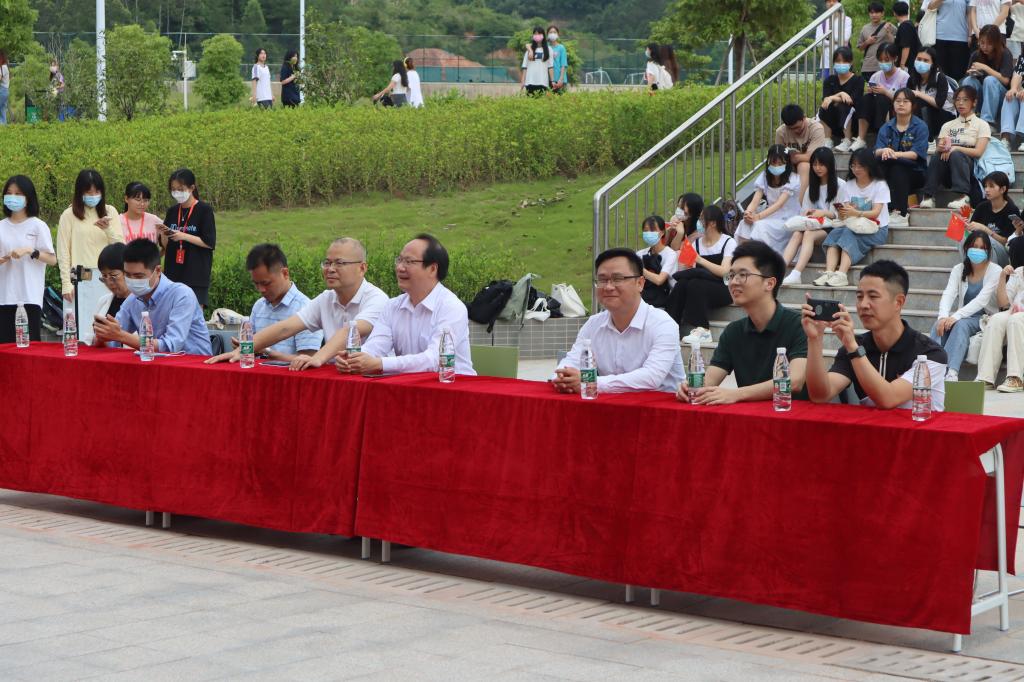 在5月19日,我院领导亲临活动现场观看表演。莅临本次活动的领导老师有院党委书记张旭日、党委副书记吴水爱、副院长谢德新、河源校区管委会主任张宇鹏、辅导员吴晨阳老师、黄立老师及杜翔宇老师、学前教育系苗素莲老师。我院党委副书记吴水爱为本次活动致辞,她对同学们在河源校区的学习生活表示诚挚的关心和真切的祝福。