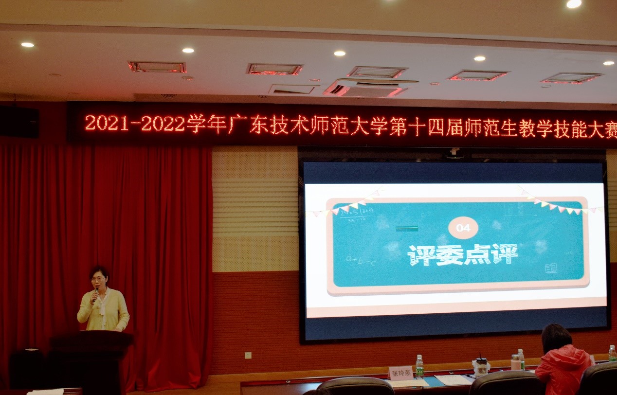 展示结束后,应用心理学系主任张玲燕老师对参赛选手的表现做出点评。张老师首先对选手们今天的表现给予充分肯定,并从专业知识和微课制作两方面给选手作出了针对性的建议。她强调,要做好一节微课,需要具备科学性、准确性的专业知识以及熟练的微课制作技术。同时,她建议选手应准确把握微课的教学特点,放大微课教学过程中的声音信号和视觉信号,并通过合适的选题、符合学生当前水平的情境构建来完成好一堂的微课,达到吸引学生的目的。