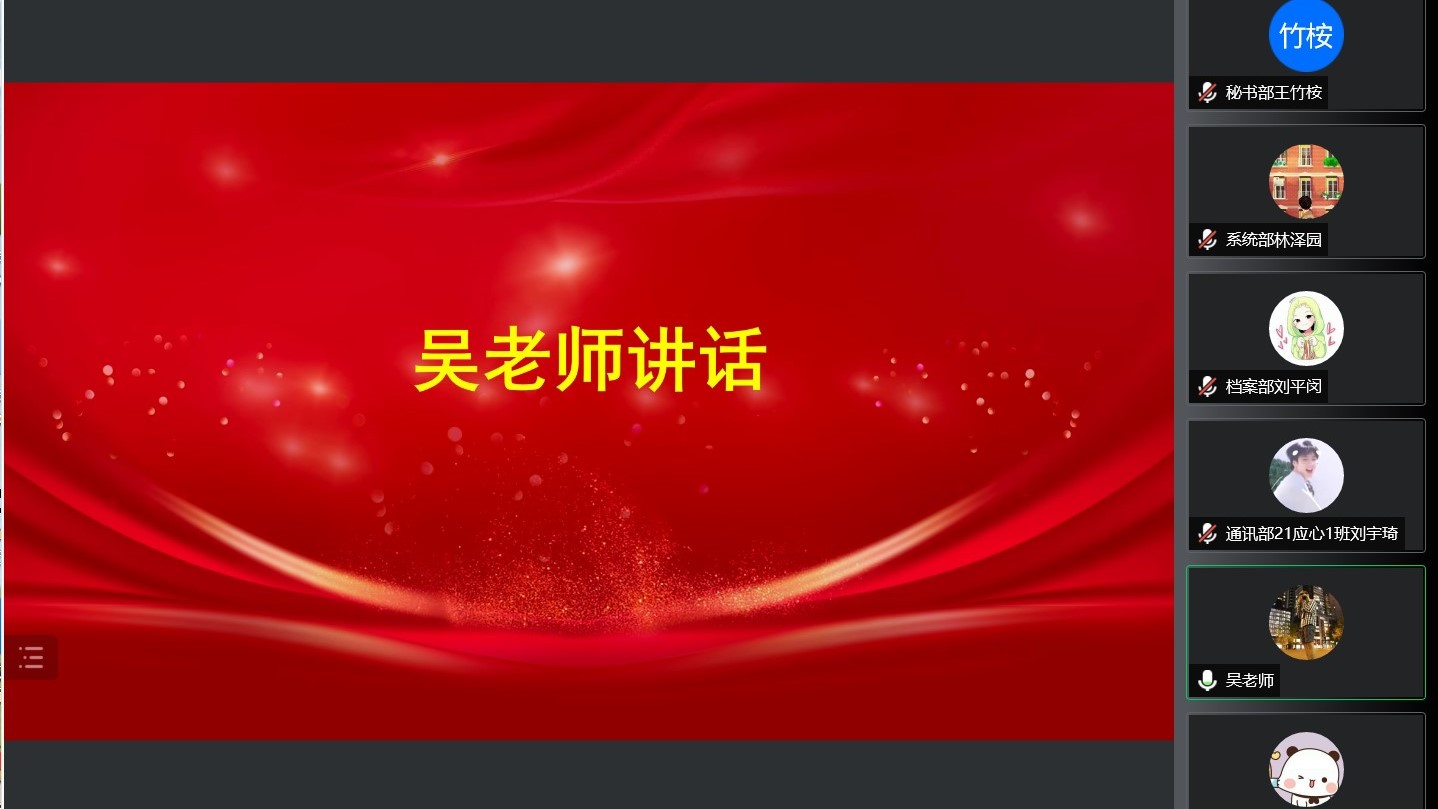 最后吴老师表示,希望学生党建工委可以将党建工作更加规范化、细致化,扩大师生影响力,打造学生党建新亮点,创建教科党建新名片,更好地为学院师生服务。(文稿:学生党建工委通讯部 刘宇琦;审核:吴晨阳)