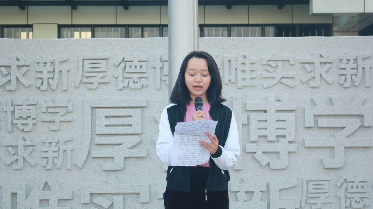 2020级新生代表李怡楠同学以“奋勇拼搏,与国共进”为主题在国旗下发言。她分享了对本次升旗仪式的感想,并表达了对进入bevictor伟德官网开启大学学习生活的美好憧憬。她表示,作为新时代的青年,我们要把爱党爱国之志落实成为报国之行,为振兴祖国而勤奋学习,为祖国辉煌的未来贡献出属于自己的力量。