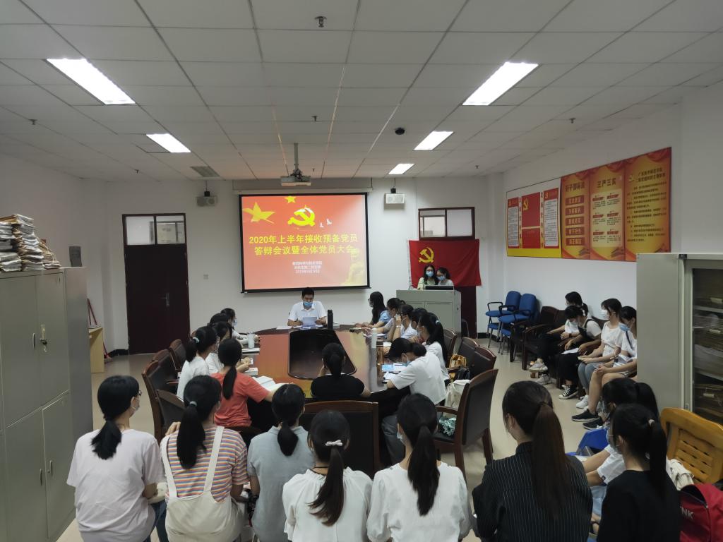 大会在雄壮的国歌声中徐徐拉开序幕,会前,全体人员低头默哀一分钟,以表达对抗击新冠肺炎疫情斗争牺牲烈士和逝世同胞的深切哀悼。根据党支部发展党员工作计划,经上级党委预审同意,召开支部大会按程序研究讨论林依凡、胡智慧等30名发展对象申请入党诸事宜。会上,30名发展对象依次宣读入党申请书,并向支部大会汇报了个人基本情况、入党动机、近年来个人实际表现情况及需向党说明的其他问题。随后,发展对象通过抽题方式进行答辩。紧接着,入党介绍人对培养过程和申请人的表现进行评价,并对其能否入党表明意见。最后,各正式党员综合发展对象整体表现,采取无记名差额投票对其投票并进行现场唱票与结果公布,各正式党员一致同意接收28名发展对象同志成为中共预备党员。