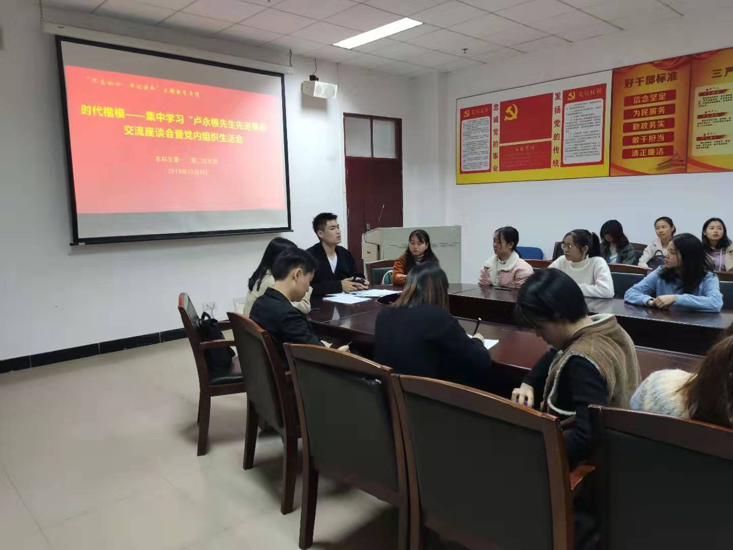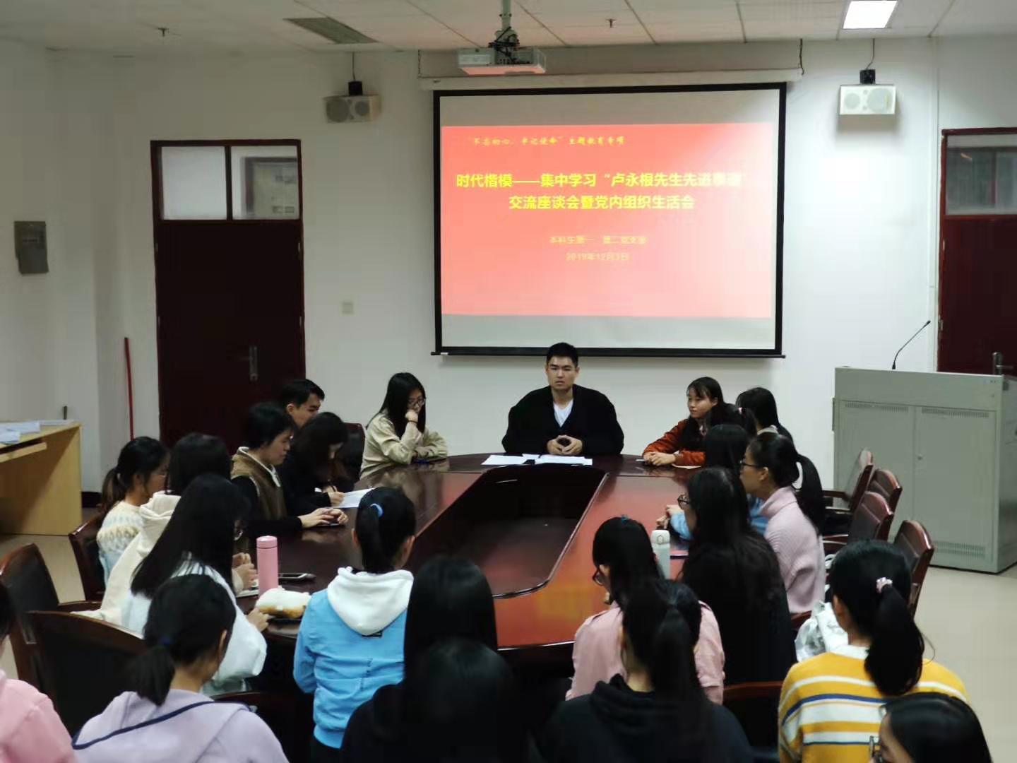 其他党员也纷纷发言,要以卢永根同志等先进典型为榜样,从自身做起,服务社会。座谈会后,吴老师期望学生党员们要发挥中国共产党党员的先锋模范的作用,要以卢永根同志为榜样,不忘初心,牢记使命,将党的宗旨信念融入到学习和工作生活中,共同为中国特色社会主义事业而奋斗。