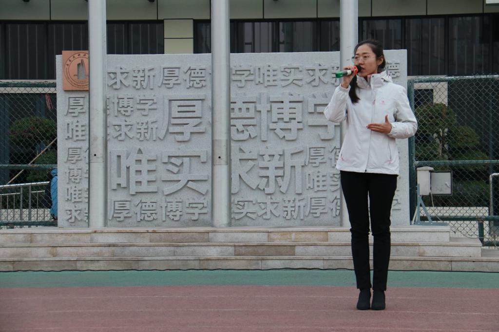 早晨六点四十分,寒风凛冽,天色微明,同学们便早早起来,在升旗台前列队等候。七点整升旗仪式正式开始,英姿飒爽的女子国旗护卫队,迈着整齐划一的步伐,喊着洪亮的口号端庄的向升旗台走去。