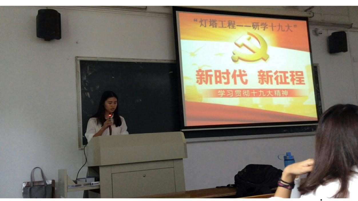 为了积极响应广东省学生联合会“灯塔工程”学生团日竞赛活动,进一步加深同学们对于十九大精神的了解,增强团员们的先进性和光荣感,紧跟党的步伐,激励大家自觉成为社会主义核心价值观的实践者和传播者,争做一名优秀的共青团员。11月7日(周三)中午12时,教育科学与技术学院研究生团支部在校本部一教201教室举办了以“灯塔工程——研学十九大”为主题的团日活动。参与此次活动的人员有教育科学与技术学院研究生辅导员梁爽老师以及研究生各个班级的团员代表。