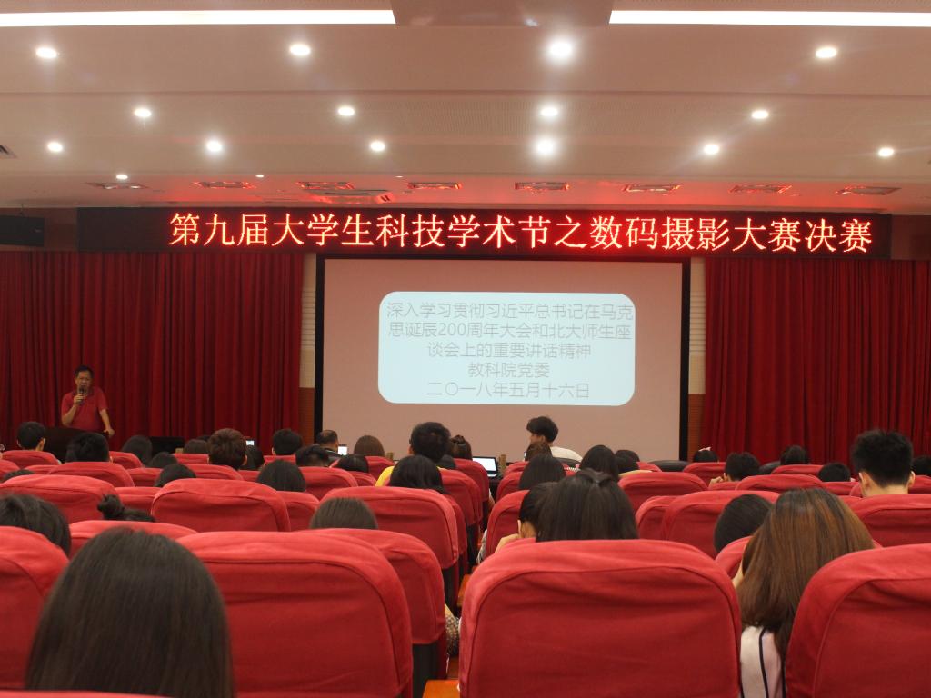 为了加强建设“校以育人为本,师以严教为业,生以成才为志”的优良校风,积极践行“厚德博学,唯实求新”的校训,丰富学生课余生活,增强学生艺术修养,同时结合我院学生专业,展示学生技能和青春风采。我院特举办主题为“寄时予美,留光忆彩”的广东技术师范学院第九届大学生科技学术节之数码摄影大赛。并于2018年5月16日晚上在白云校区三教104报告厅举办该大赛的决赛。出席本次决赛的领导老师有我院党委书记林启词、陈军老师、余佳恕老师、王孜老师以及各二级学院学生代表和各作品的参赛选手。