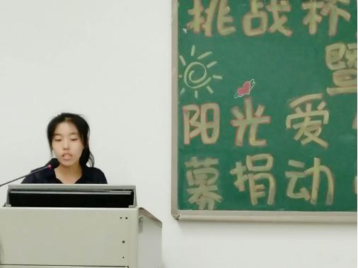 “挑战杯”宣讲会结束后就进入了第二项议程——阳光爱心基金募捐大会。首先,由主持人为我们讲述了阳光爱心基金会上学期的工作概况,并且向同学们展示了我们阳光爱心基金会是公平公正公开的,做到资金流向完全透明化,以便同学们监督。会议中介绍了申请爱心款的具体流程,同时,希望同学们加入基金会倡议的“一毛钱”捐助计划中来。接下来就是观看爱心视频的环节,通过观看爱心视频,同学们对阳光爱心基金会有了更深刻的了解。