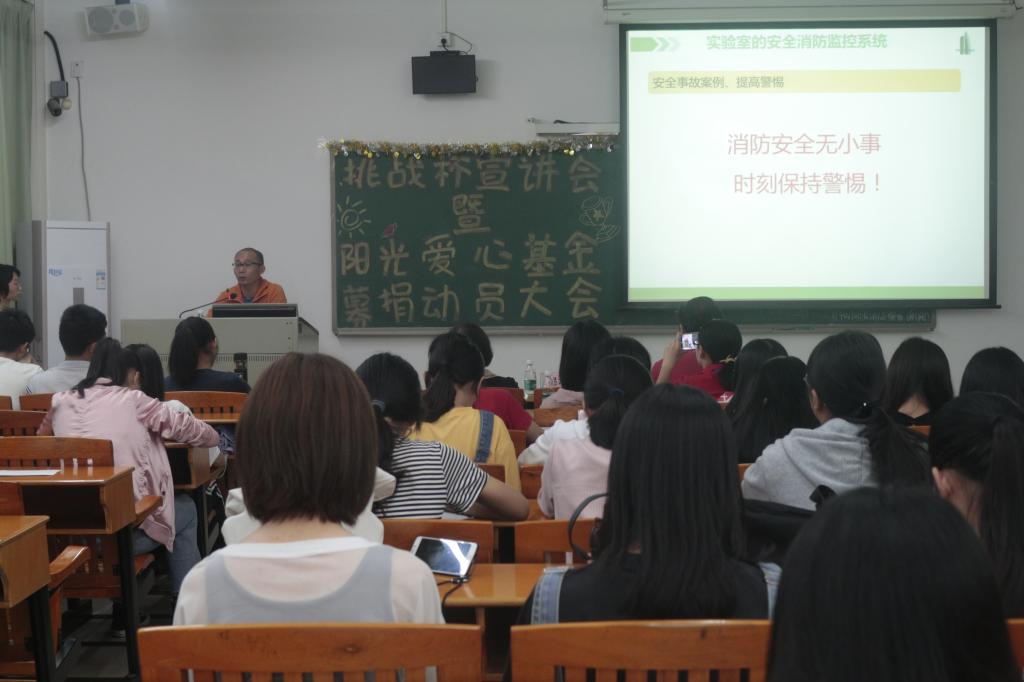 陈军老师在会上提到我院实验室的安全设施很完善,但是在上周还是发生了由于学生插座使用不当而引起实验室断电,插座着火的安全问题,他提醒我们不要认为安全问题离我们很遥远,其实就在我们身边,我们要时刻把安全问题放在首位。