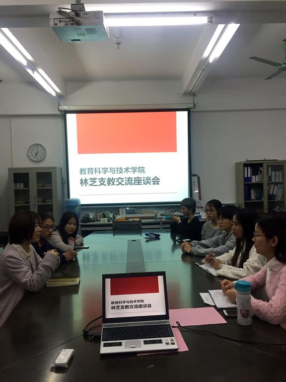2018年1月4日晚6点半,教育科学与技术学院西藏林芝交流会于一教1314举行。本次交流会诣在希望同学们能够充分了解支教活动,积极参与。会上,首先由主持人张琳老师简述西藏林芝支教计划。然后由此届援藏支教队成员14学前专业的许妙琦和苏晓玲分享此次支教心得与感受。接着是我院大二大三有意愿加入支教队的同学跟到场支教队成员们进行深入交谈。最后,主持人对此次会议进行总结,圆满结束会议。