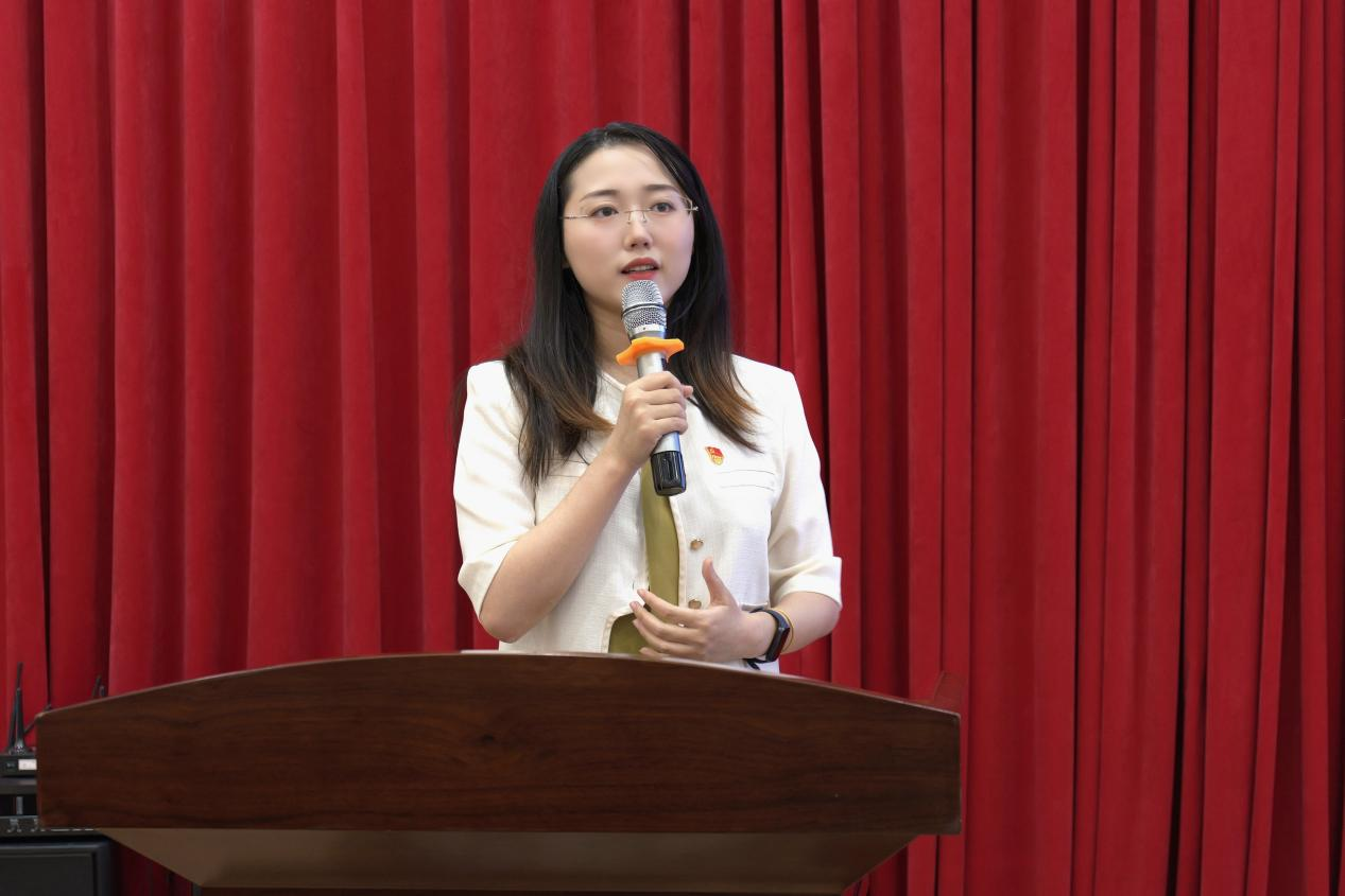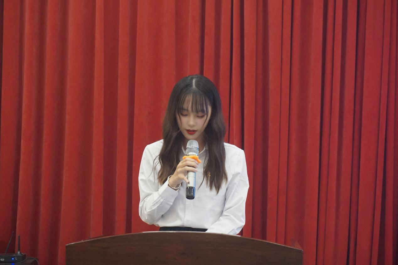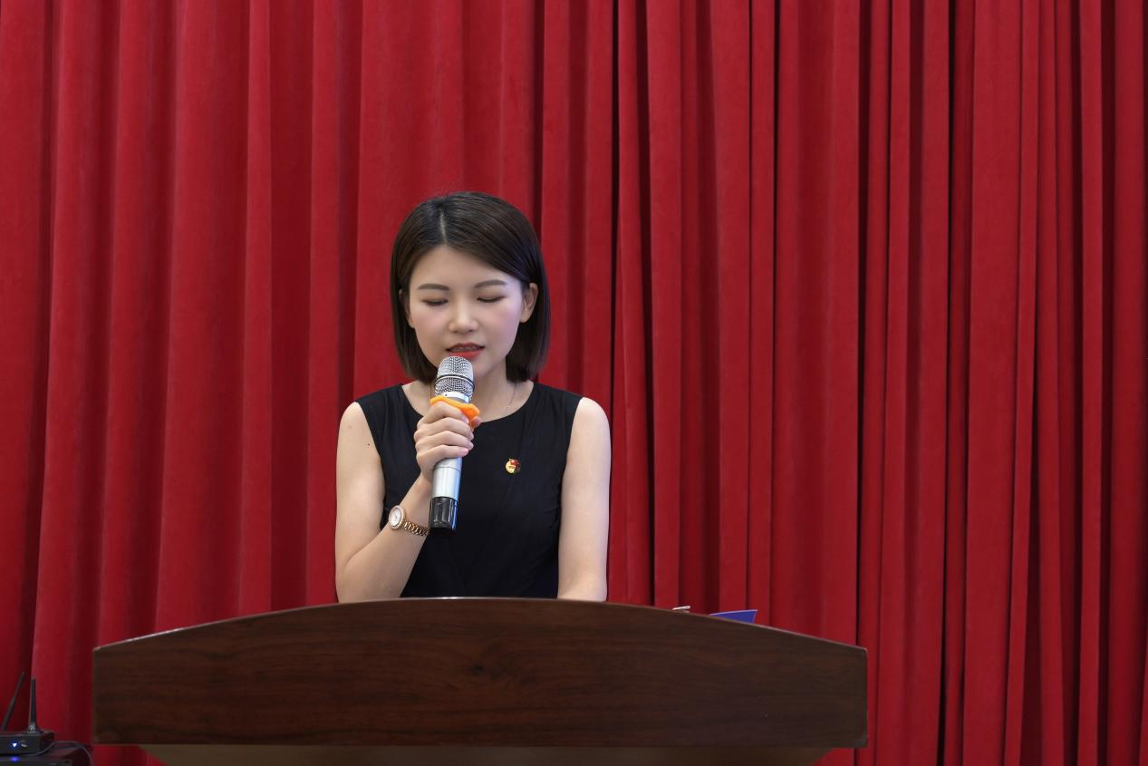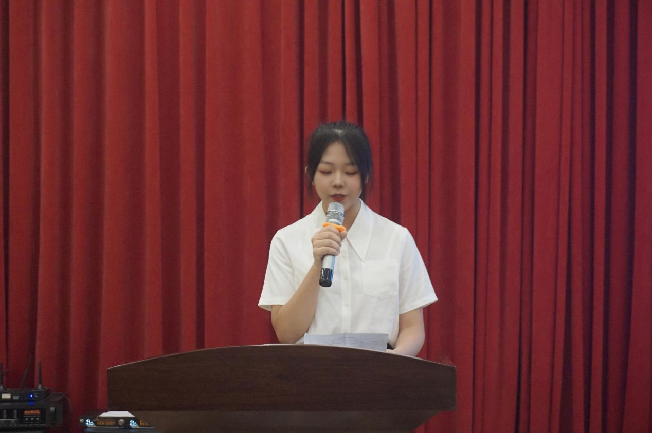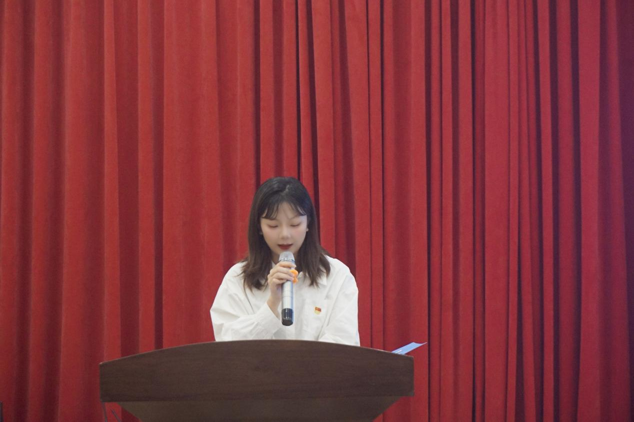 接下来进行的是正式会议。正式会议第一项议程,大会全体成员起立,奏唱国歌。第二项议程为校团委刘雯璇老师致辞。刘老师首先高度肯定了过去的一年里我院完成的各项工作,高度赞扬我院党政领导班子发挥了带头作用,坚持了以党的光辉旗帜为引领,以创新为驱动,有效引领凝聚青年、组织动员青年、联系服务青年的工作。并就我院思想引领、组织建设、创新创业竞赛、社会实践等各方面都取得了突出成绩表示肯定。随后,刘老师强调我院学子应当努力奋斗,积极涵养正气、底气、朝气、才气,并向我院学子提出殷切希望。同时,我院团学干部应当以优秀学生干部的标准来要求自身,砥砺奋进,共同将学院团学工作做的更好。