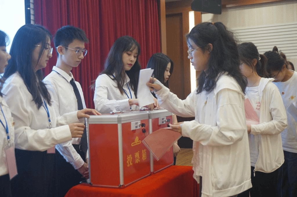 在候选人演讲完毕后,在监票人的主持下,换届选举投票工作有条不紊的进行。投票环节按照公平、公正、公开的原则,恪守民主选举的基本要求,由各学生代表亲自填写选票表并有序上台将选票投入票箱。