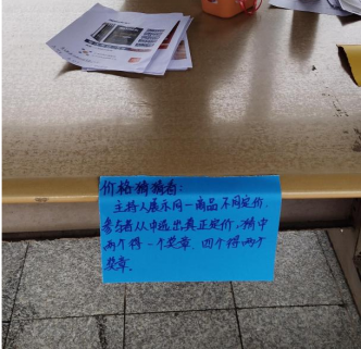 游戏规则:参与者在三分钟内浏览主持人事先准备好的商品折扣信息,需要参与者对比给出的淘宝价格,辨别出哪个直播间活动价是真正的优惠,哪些是商家设置的陷阱(换句话说,如果直播间活动价低于淘宝价格就是真折扣,反之则是假折扣)。