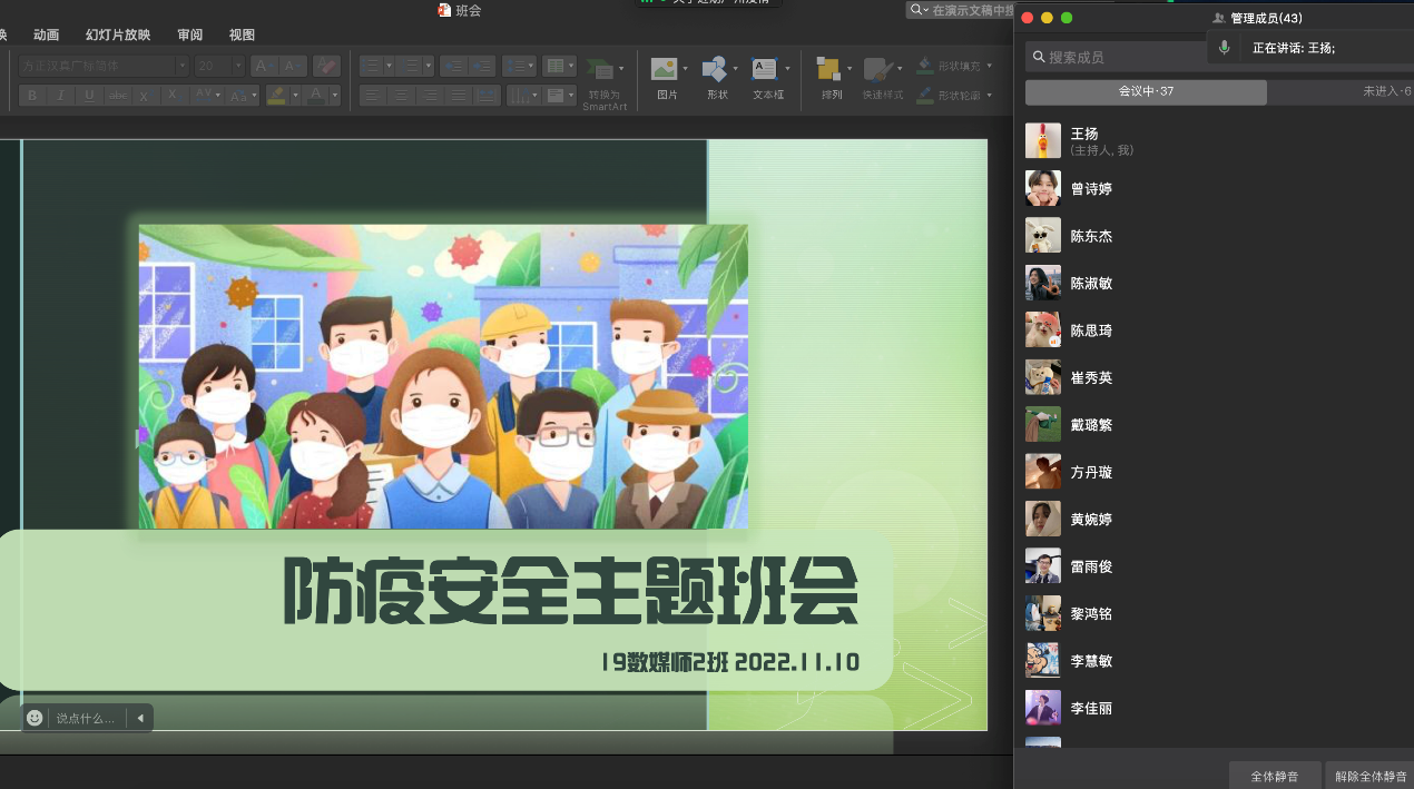 全面宣传,提高防范意识。学院通过开展疫情防控线上主题班会,教育引导学生积极配合学校做好各项防控措施,自觉遵守管理规定,提升自我防控意识和能力。真正发挥班主任第一导师作用,结合党的二十大理论宣讲,解读国务院联防联控机制《关于进一步优化新冠肺炎疫情防控措施科学精准做好防疫工作的通知》和学校出台的疫情防控工作方案、学生行为规范等文件要求,充分认识优化调整防控措施不是放松防控,更不是放开、“躺平”,增强学生对防疫政策的理解,提高学生的自我约束能力。同时,运用新媒体网络服务功能,持续做好防火、防诈骗教育宣传,筑牢疫情防控和平安校园“双重防线”。