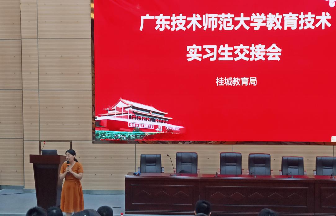 随后赵玉老师介绍了广师大教育技术学专业实习生的基本情况和教育实习的任务安排,对南海桂城街道教育发展中心的领导与映月中学等18所实习学校的校外指导老师们表示了感谢,并嘱托实习生尽快转变角色、适应实习学校的工作要求,围绕信息技术类课程教学、班主任工作、创客比赛指导等深入学习实践,真正做到学以致用、发挥所长。