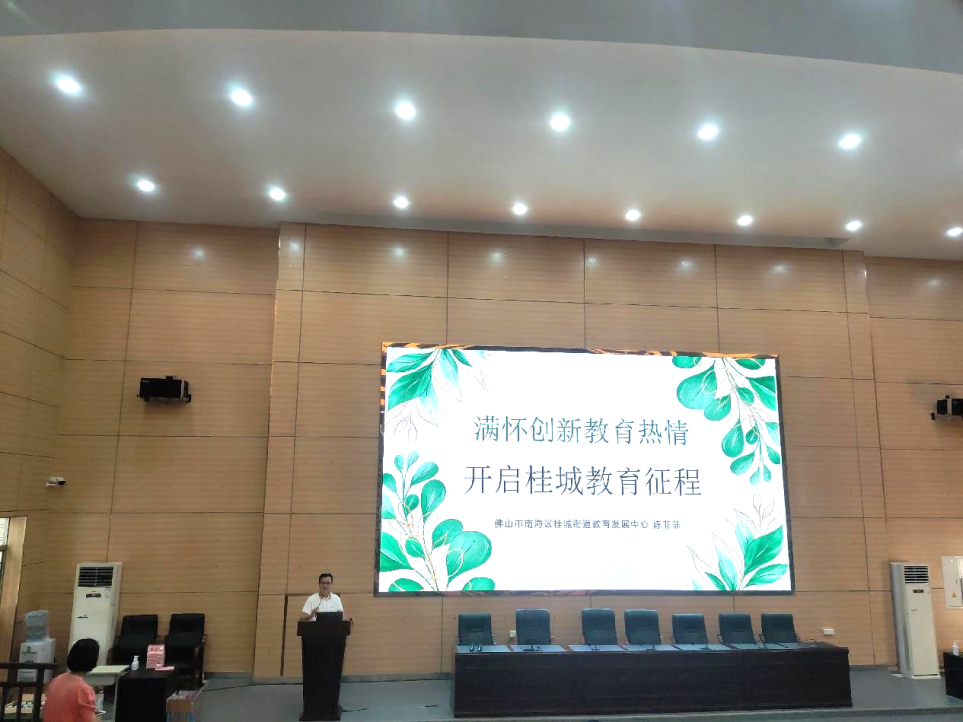 为进一步推进学院教育实习基地建设,提升专业人才培养质量,落实学院人才培养目标,教育科学与技术学院与佛山市南海桂城街道教育发展中心合作签约实践教学基地。8月30日上午在映月中学举行了实践教学基地授牌仪式暨教育实习实习生交接仪式。佛山市南海桂城街道教育发展中心教研室陈非非主任、郑展文老师,文翰三小、灯湖三小、平洲中心小学、灯湖四小、映月中学、怡海小学、南海中心小学、灯湖五小、桂江三小、南海实验中学映月校区、映月五小、灯湖七小、文翰四小、桂园小学、桂江一中、桂江二小、海三路小学的领导老师,教育科学与技术学院教育技术学系系主任赵玉老师,2019级教育技术学(师范)专业实习生一并出席活动,会议由佛山市南海桂城街道教育发展中心教研员郑展文老师主持。
