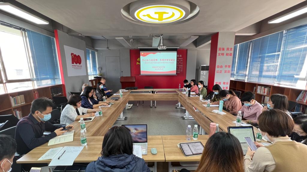 会上,吴水爱首先传达广东省2022届高校毕业生就业创业工作第二次调度视频会议精神和《关于举办2022届高校毕业生就业促进周开展“百日冲刺”系列活动的通知》文件内容,并从升学和签约两方面介绍了学院2022届毕业生当前就业形势,就下一步毕业生更加充分、更高质量就业促进工作进行了具体部署,发布了学院2022届毕业生就业创业工作实施方案、考研指导和就业帮扶“一对一”对接方案等。她指出,今年全国高校毕业生达1076万人,再创历史新高,叠加当前疫情影响,目前毕业生就业创业形势十分严峻,希望全院上下都要高度重视,积极行动,持续开展“1+ 1 + N”就业帮扶计划,继续关注每一位毕业生的就业情况,引导学生合理定位,增强求职安全意识,同时要加强对毕业生教育引导和服务工作。