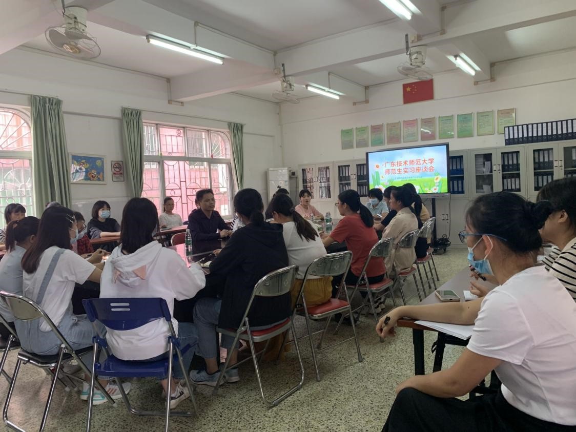 2021年10月15日上午,教育科学与技术学院副院长谢德新、学前教育专业负责人全守杰、指导老师刘丽娟一行3人,赴广州市白云区江村幼儿园举行教育实习基地与专业建设合作研讨暨实习生座谈会。江村幼儿园苏主任、幼儿园指导教师等相关负责人参加了合作研讨与座谈会。