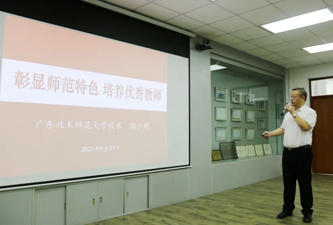 骆少明简要介绍了我校师范专业设置、培养目标定位、建设思路、建设理念,详细阐述了我校“校政企校”四位一体、八位协同、八个对接的职教师资协同培养机制,“中-高-本-硕”贯通培养体系,“三导师制”教学团队的组建,“六个三” 培养模式的实施,卓越教师教育校级、省级、国家级等三级专业体系的建立,教师执业能力为导向的课程体系的开发,“内外联动”实践教学体系和PDCA循环的教学质量监控体系的构建,师资培训品牌的打造,展示了我校专业建设成果突出、教师教育教改成果丰硕、师范生培养质量逐年提高、服务教师教育能力日益增强和教师教育培养培训受到媒体关注等我校师范专业建设成效,并提出了下一阶段的工作设想。