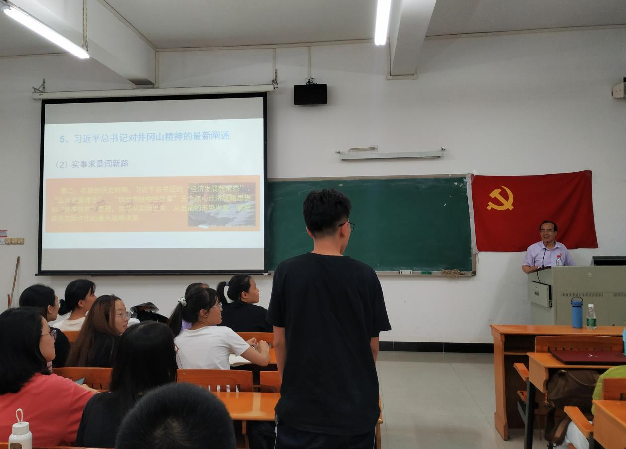 余翔教授以《学史明理,学史增信——传承红色基因,走好中国道路》为主题,说明了学党史的重要性和必要性,告诉大家要从党史中学习过去的经验和教训,坚定信念信仰信心。随后,他详细讲述井冈山革命根据地斗争史和井冈山精神,解释了习近平总书记对井冈山精神的最新阐述,带领同学们感悟“坚定执着追理想,实事求是闯新路,艰苦奋斗攻难关,依靠群众求胜利”的井冈山精神。另外,余翔教授还与大家进行互动问答,同学们积极回答所学党史知识。最后,他勉励同学们要认真学习党史,深刻铭记井冈山精神并将其贯彻到实际行动中。
