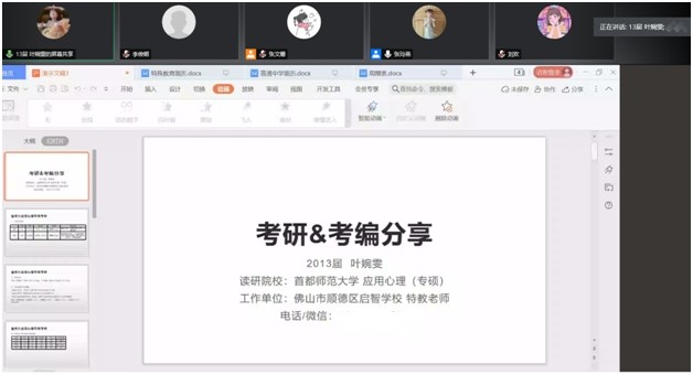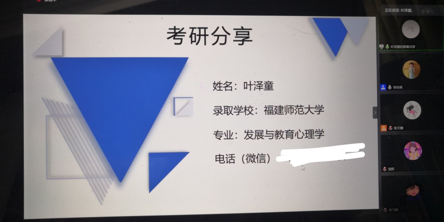 本次会议还邀请了多位优秀毕业生代表分享就业和升学经验。余诗鑫、黄颖仪和李韵芝等毕业生分享了自己的考编经验,包括简历制作、考前准备、考试形式和面试技巧等;叶婉雯、殷舒琦、叶泽童、廖珏敏和潘凯莉等毕业生分享了院校选择、时间规划、复习安排、志愿调剂和如何申请海外院校等升学经验。各位优秀毕业生不仅毫无保留地分享了自己的宝贵经验,还留下了个人的联系方式,表示愿意解答师弟师妹们在就业、升学过程中遇到的各种困惑。