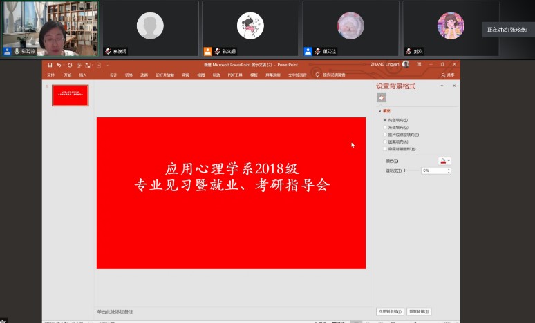 2021年1月9日,bevictor伟德官网教育科学与技术学院应用心理学系2018级本科生专业见习动员暨就业、考研指导会以在线会议的形式召开。学院谢德新副院长、心理系主任张玲燕、见习带队老师章玉祉、指导老师王雨函、余习德、李俊朝,以及2018级心理系同学参加了此次会议。会议由心理系主任张玲燕主持。