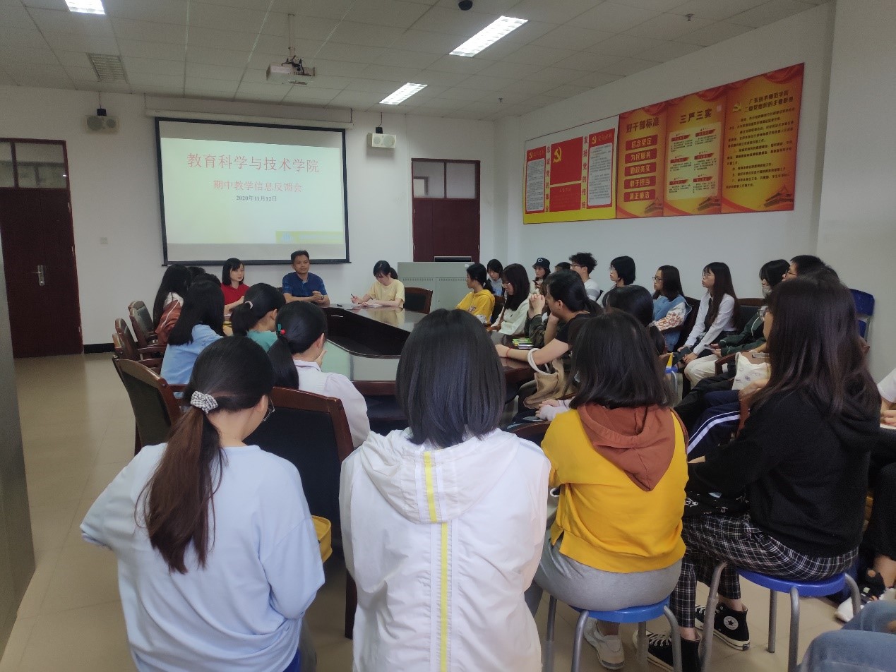 为了深入了解本学期的课堂教学进度、授课质量情况、学生上课情况,提高教学质量并加强教学过程管理,教科院于11月12日中午在白云一教315召开期中教学检查学生座谈会,教学副院长谢德新副教授、教务员张晓颖、李伶俐及2018至2020级各班教学信息员与学习委员共三十余人参加会议。
