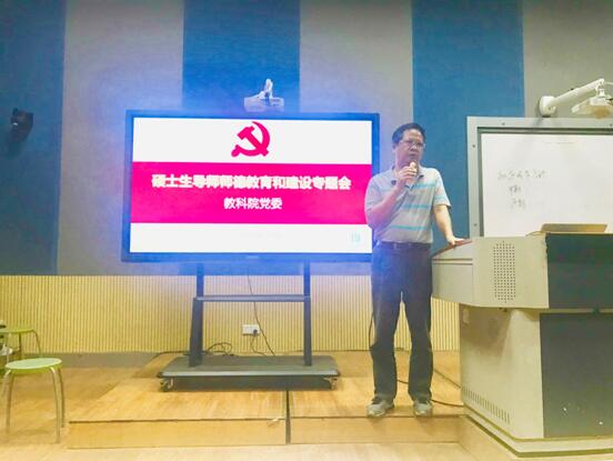 教育科学与技术学院党委随后接着召开了硕士生导师师德教育和建设专题会。林启词书记号召全体教职员工尤其是硕士生导师,要充分认识营造良好师德师风的重要性和紧迫性,牢固立德树人根本任务,以《新时代高校教师职业行为十项准则》为行为指导,努力当好“四个引路人”,争做“四有”好老师。此外,林启词特别强调我校对课堂教学管理的纪律要求,要求全体教师严守课堂教学纪律,为树立严谨的校风、教风和学风做贡献。
