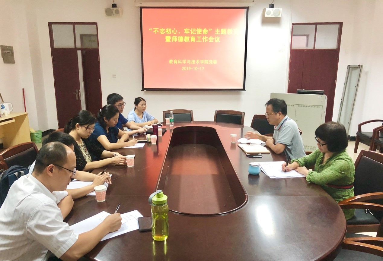 根据学校“不忘初心、牢记使命”主题教育方案和学校党委《关于开展2019年师德建设主题教育月活动的通知》要求,为进一步推进师德师风建设工作,提高教职工的思想政治素质和职业道德修养,建设一支师德高尚、业务能力强的教师队伍,10月17日下午,教育科学与技术学院党委,在白云校区一教315室召开“不忘初心、牢记使命”主题教育暨师德教育工作会,学院党委书记林启词、副书记吴水爱和近两年新进全体博士参加了会议。