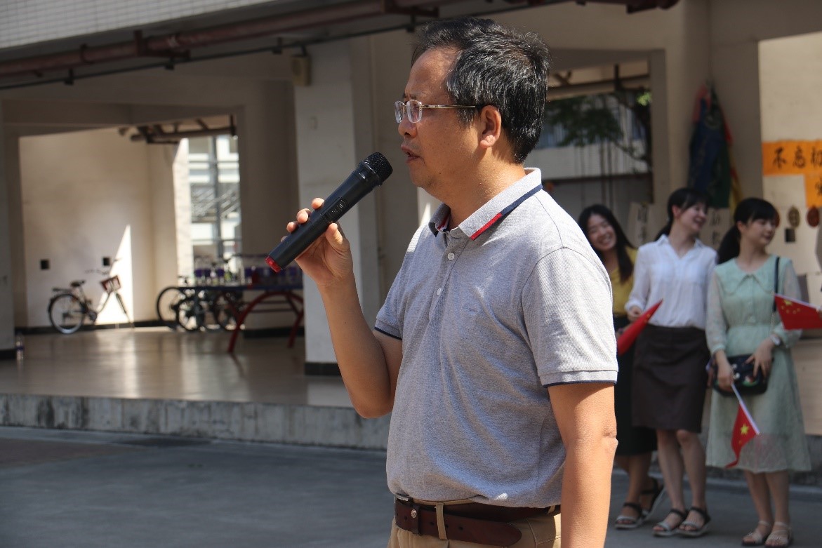 活动结束后,林启词书记首先代表学院党委对2019级本科新生表示关怀之情。他指出,军训是大一新生进入大学的第一堂课,同学们要认真对待,严格要求,刻苦训练,以“时不待我,只争朝夕”的精神,做到一切行动听指挥,养成良好的生活习惯,为后面的学习和生活奠定良好的基础。同时,林书记强调,今年是新中国成立70周年,希望同学们以饱满的热情,为祖国庆生,并预祝同学们圆满完成军训任务。