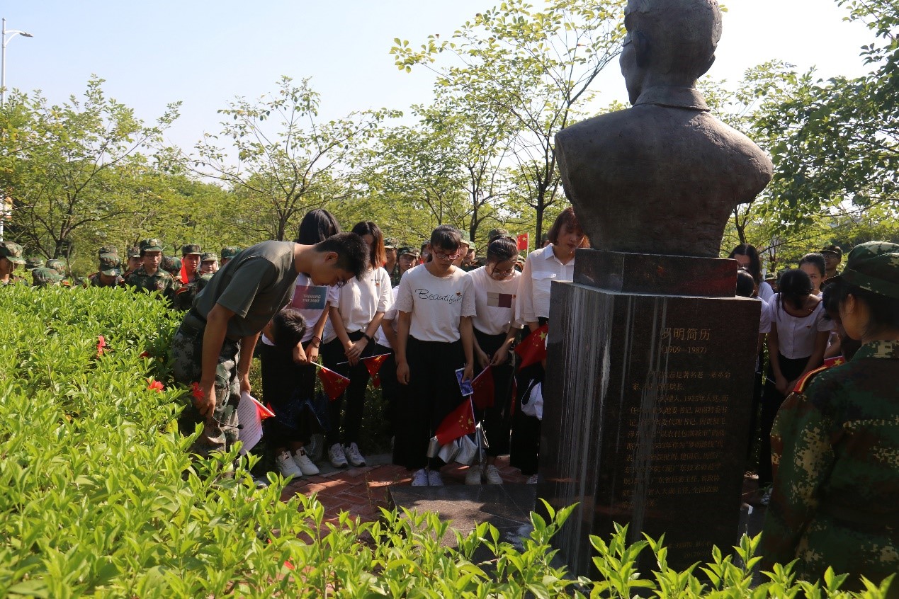 全民国防教育日|全体师生瞻仰我校首任校长罗明同志雕像并三鞠躬