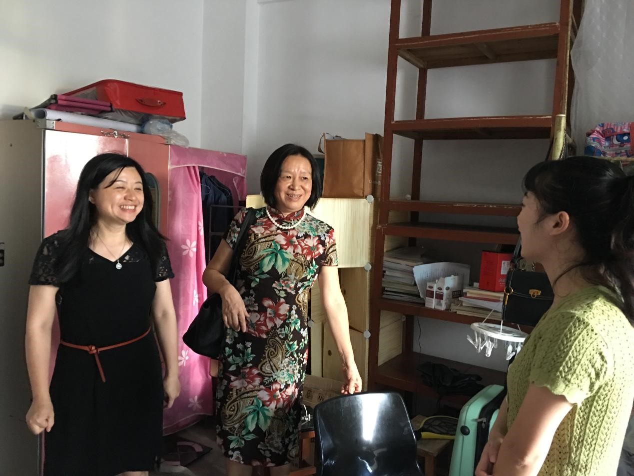 下午四时许,我院院长陶红、副院长陈丽君和辅导员梁爽一同深入研究生新生宿舍,看望慰问新同学,给新生带去了我院的问候和关怀。听说老师们前来宿舍看望,同学们很快围拢过来,你一言我一语地回答着,每到一间宿舍,领导老师们都向同学们表达着亲切的问候。陶院长亲切的询问新同学们来自哪里,是否思念家乡,对新环境是否适应,关心同学们的饮食起居,并嘱咐同学们要养成良好的生活作息和卫生习惯,和同学们处理好关系,互帮互助,尽快融入研究生的生活。