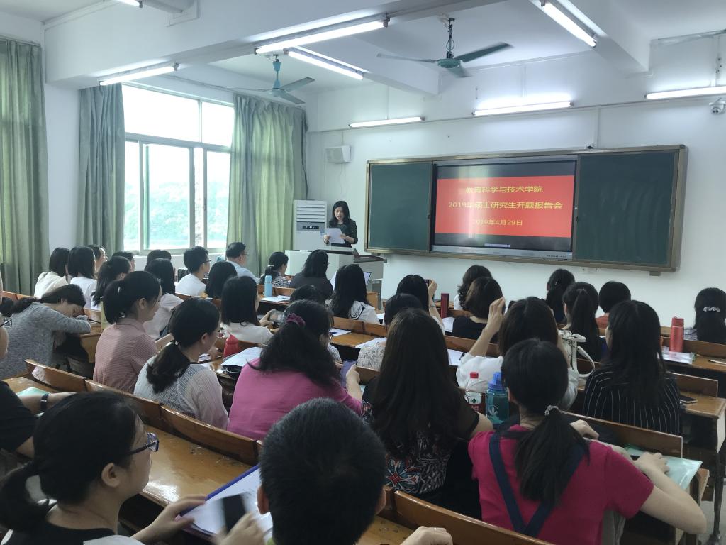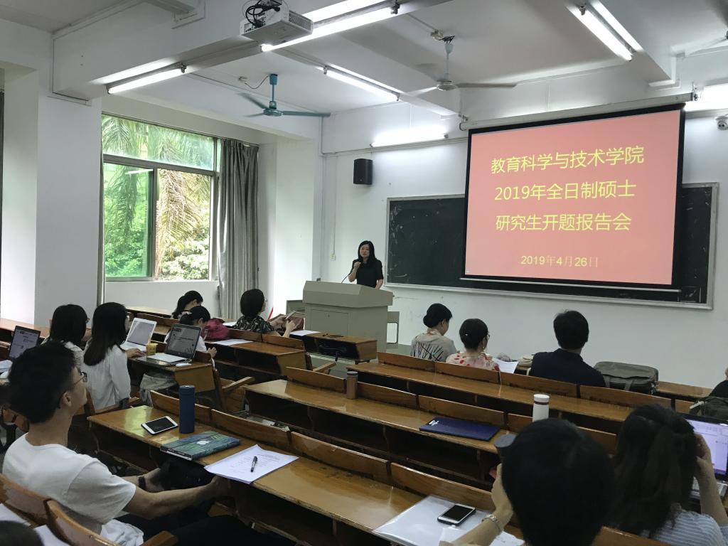 4月26日、4月29日上午,教育科学与技术学院职业技术教育学、教育管理、现代教育技术三个专业硕士研究生开题报告会在校本部一教305、201举行。参加开题报告会的校外专家有广东省教育研究院席梅红副研究员、七十五中容梅、桃园中学谢彦兴校长、南国学校甄斌媚副校长等。邓文新、陈丽君、赵玉、苗素莲、曹育红等校内专家参加了开题报告会。三个专业的全日制及非全日制共63名研究生参加本次开题报告会。