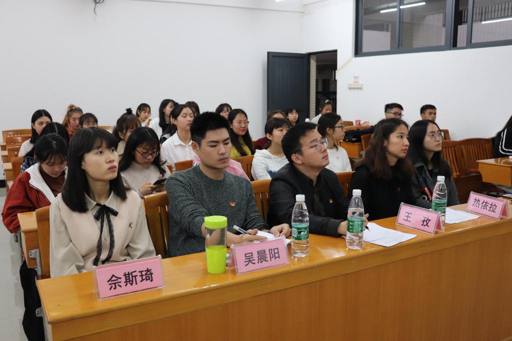 为深入学习习近平总书记系列重要讲话精神,切实加强团员青年思想政治教育,提高学生自我教育、自我管理和自我服务能力,激发团员意识,增强对团组织的认同感及归属感,我院学生团员组织开展了以 “立德树人·求学圆梦”为主题的系列教育活动。3月18日晚,我院在白云校区三教513举办了团日活动汇报会议暨新团员入团仪式。本次汇报会议邀请的领导嘉宾有我院王孜老师、吴晨阳老师、热依拉老师,参与会议的还有我院各班级的团支书、组宣委员和新入团团员。