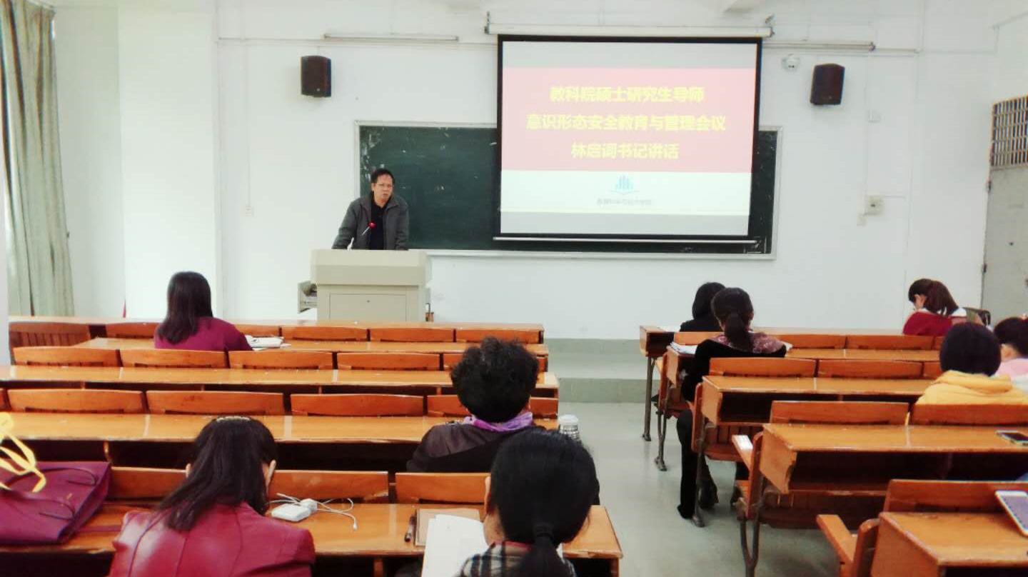 2019年1月16日上午9:00—11:00,教科院硕士研究生导师意识形态安全教育与管理暨2019年学术盘点会议在一教201成功召开,参加会议的有林启词书记、陶红院长、陈丽君副院长、谢德新主任、研究生教学秘书、研究生辅导员和全体院内23名硕士生导师,会议由陈丽君副院长主持。