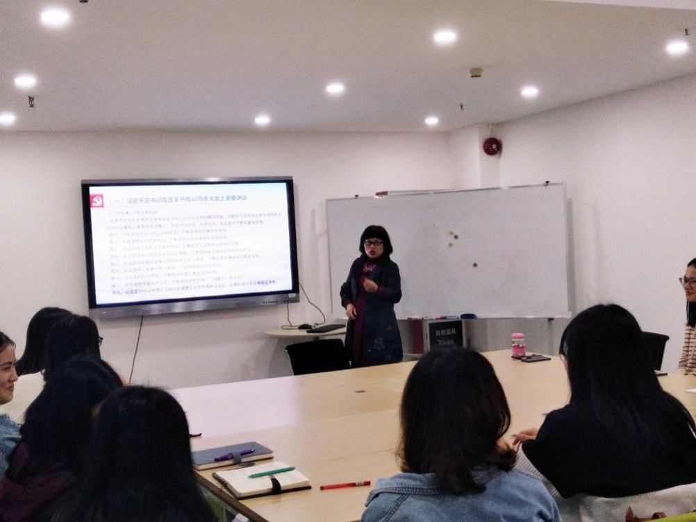 为深入学习贯彻习近平总书记视察广东重要讲话精神和党的十九大报告, 12月26日教科院党委副书记吴水爱为18级全体研究生作了“不忘初心终绽放,牢记使命续华章”的专题讲座。出席此次报告会的有教科院办公室主任常锋峰老师,辅导员梁爽老师和18级全体研究生。