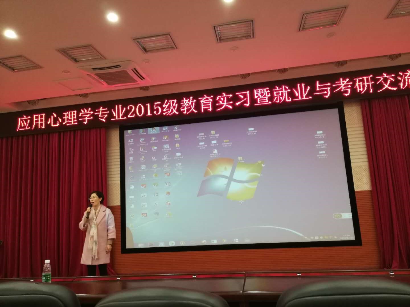 2018年12月25日下午,教育科学与技术学院应用心理学系的师生在3教讲学厅举行了2015级学生实习总结大会。