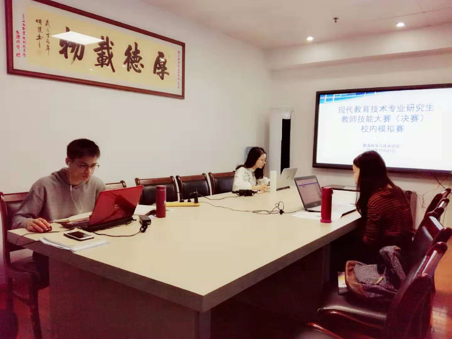教育科学与技术学院现代教育技术专业的张婷燕、林育珊、梁友明等三位研究生在首届全国全日制教育硕士现代教育技术专业教学技能大赛(初赛)脱颖而出,进入全国决赛。教科院领导高度重视此项赛事,积极组织3位研究生进行赛前模拟,并邀请有经验的教师进行现场指导。