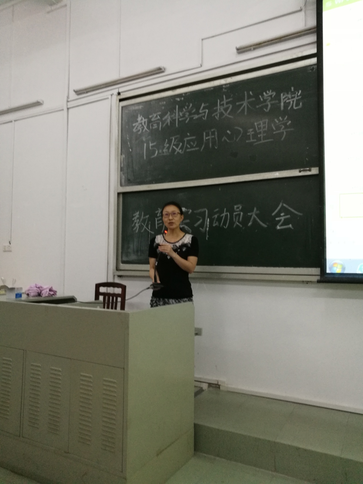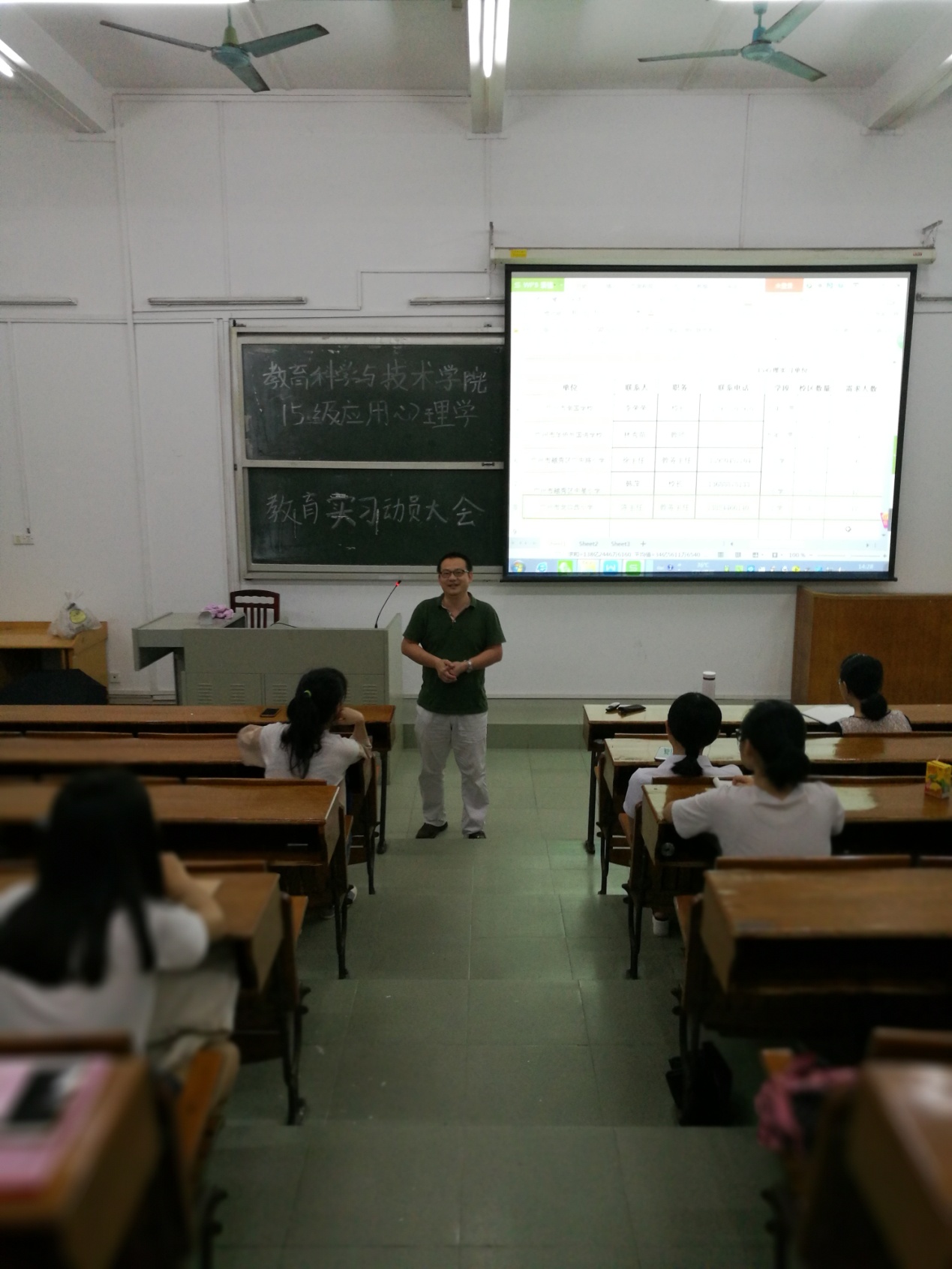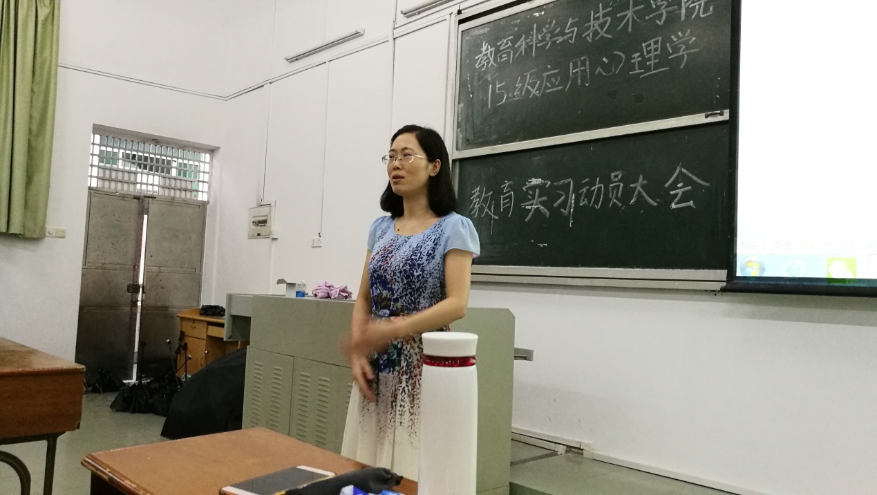 2018年6月8日下午两点,教育科学与技术学院2015级应用心理学教育实习动员大会在一教207顺利召开。我院作为带队老师的张玲燕老师、李宁老师和王国华老师,以及15应用心理学(师范)1班全体同学参加了本次会议。会议由张玲燕老师主持。