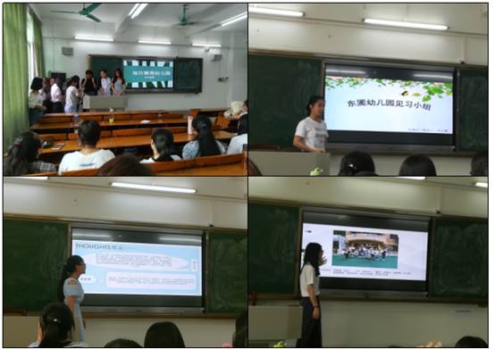 5月9日上午,孙文云老师组织2017级学前全体同学进行了教育见习交流会。同学们按照所去幼儿园的分组进行了汇报。