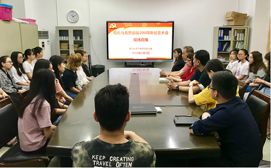根据学校党委的要求,教科院党委组织师生收看现场直播。学院党委要求要深入认真学习习近平总书记在纪念马克思诞辰200周年大会上的重要讲话精神,坚定中国特色社会主义道路自信、理论自信、制度自信、文化自信,坚守共产党人的理想信念。