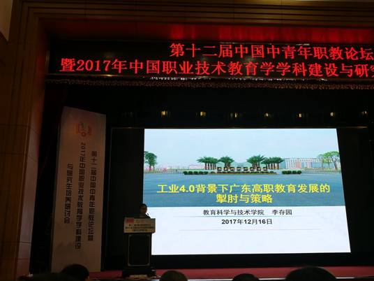 我校教科院年轻教师李存园老师提交的论文“工业4.0背景下广东高职教育发展的掣肘与策略”,在大会300多篇征文中脱颖而出,制定作为大会主题发言,向与会代表交流了工业4.0背景下广东省高等教育发展职业教育发展的问题,并提出了具体的策略,展现了我校青年教师扎实的学术基础和敏锐的学术思维。自由讨论环节,我院师生积极参与讨论。陶红教授对职业教育科研成果的地区分布不均问题提出个人看法,认为经济发展与职业教育理论研究应该密切联系,理论成果需要为经济服务,得到与会代表的认同。