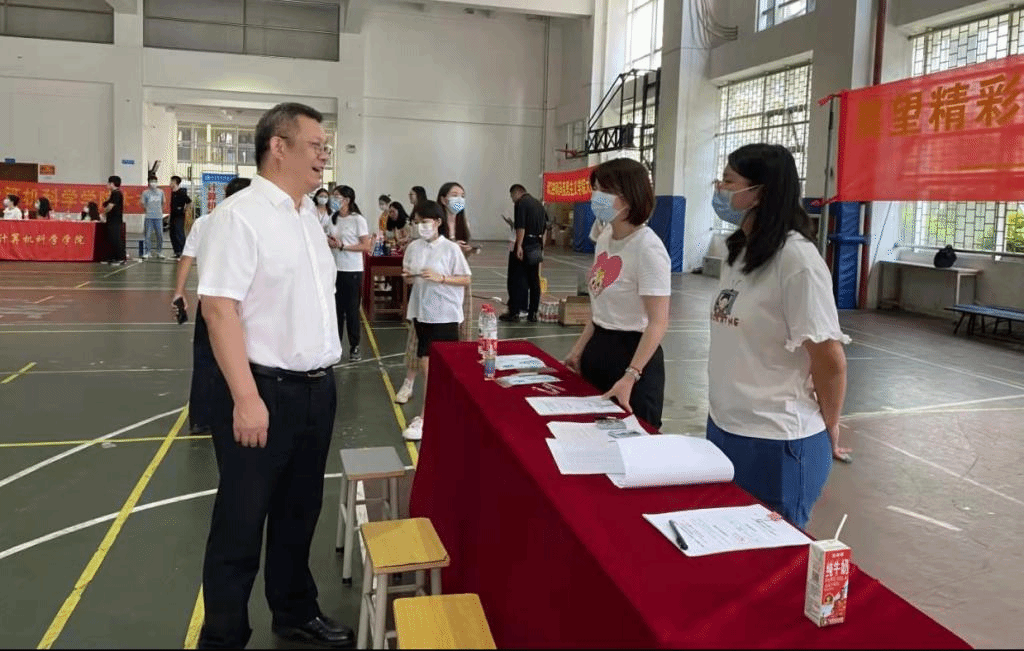 我院喻忠恩书记、邓文新院长、刘海兰副院长几位领导在百忙之中来到报到处,指导迎新工作。他们亲切慰问迎新小组,肯定迎新准备工作,要求迎新做到“服务学生,严抓防疫”;与新生亲切交流,鼓励大家尽快适应学生角色,在有限的研究生生涯,从德智体美劳各方面提升自己;并表示学院会尽力提供好的学习环境,安排优秀导师帮助新生成长。