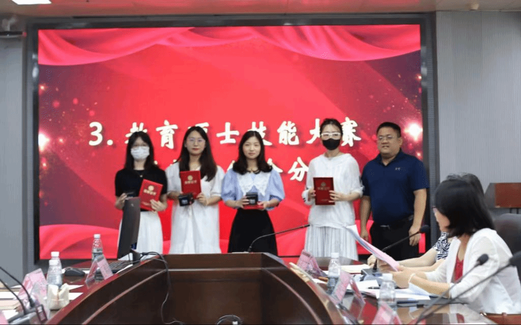 接着,为2021级教育硕士技能大赛院级获奖选手们颁发荣誉证书。同时由获得一等奖的2021级信息技术专业赵桂雪和2021级教育管理专业王慧婷为大家做了教师技能大赛经验分享。