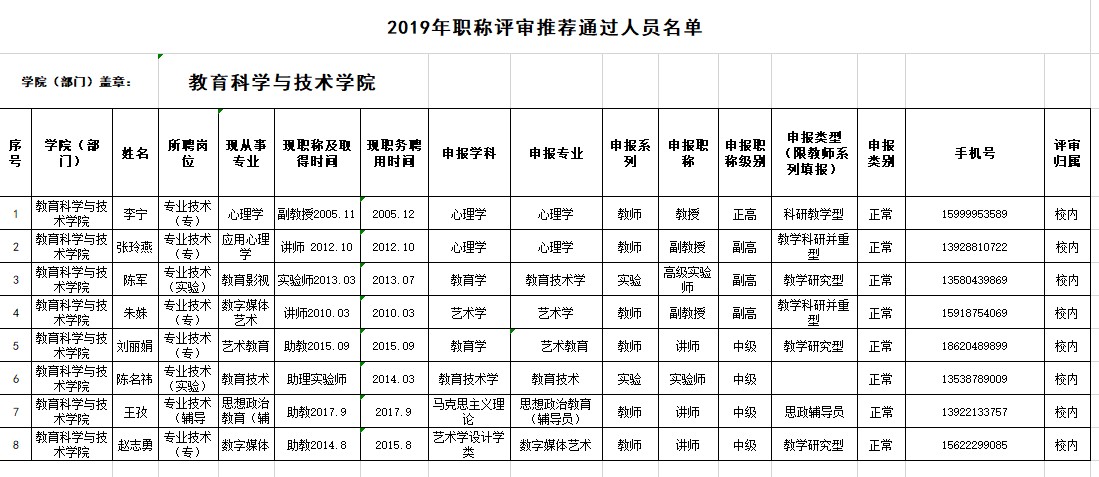 教育科学与技术学院职称评审工作小组2019年10月17日