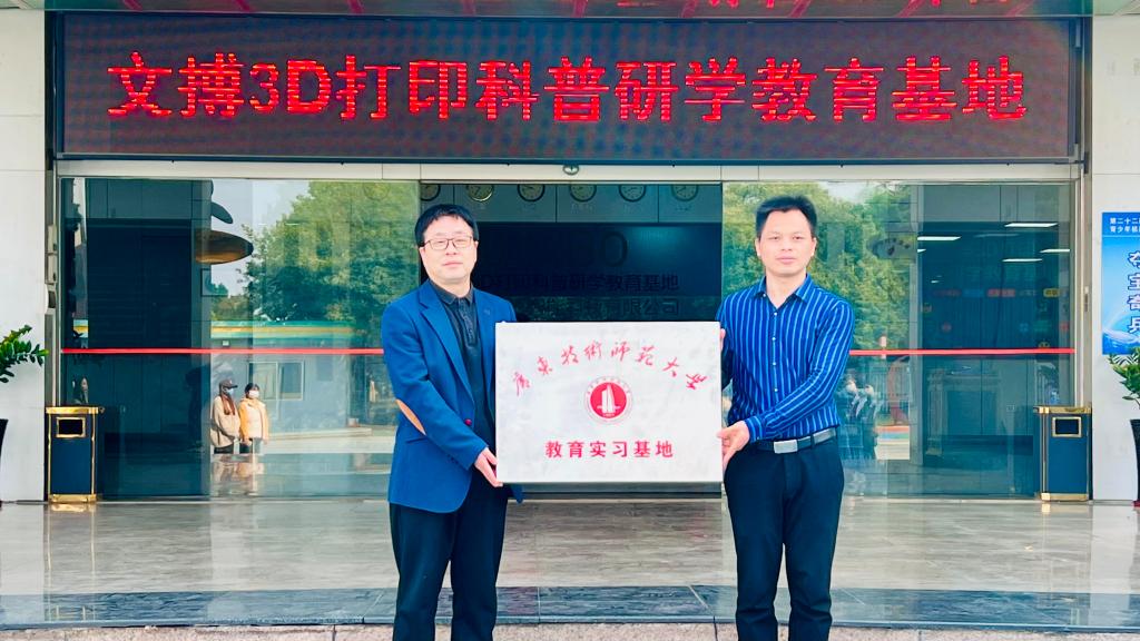 紧接着,学院副院长谢德新与白云区文搏3D打印研学基地董事长朱杨林共同为实习基地授牌。此次授牌标志着未来为教科学子开展科技教育、综合实践活动提供更好的实践平台,意味着合作更加紧密,资源对接更加广泛。