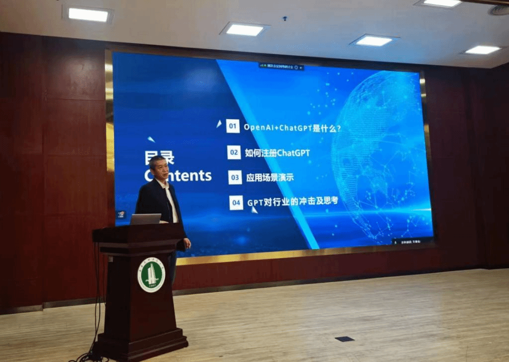 会议第三议程中,广州薪火互动科技有限公司CEO詹劲辉先生以及中瑆科技(广东)有限公司副总经理郭巍峰先生,分别分享了主题为“OpenAI+Midjourney在教育中的应用”和“OpenAI+ChatGPT为主线的数字媒体应用”的两场讲座。两场讲座同时在线上线下举行,由詹劲辉先生与郭巍峰先生亲自演示产品,引来专家、老师、学生们的热烈关注与交流讨论。